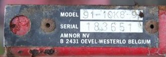 Tag fitted to 1979 C-101, where 9 signifies 1979, 10 the rated HP, K for Kohler, 8 speed, 92 manufactured in Belgium. But it's not always that simple! see here for more info